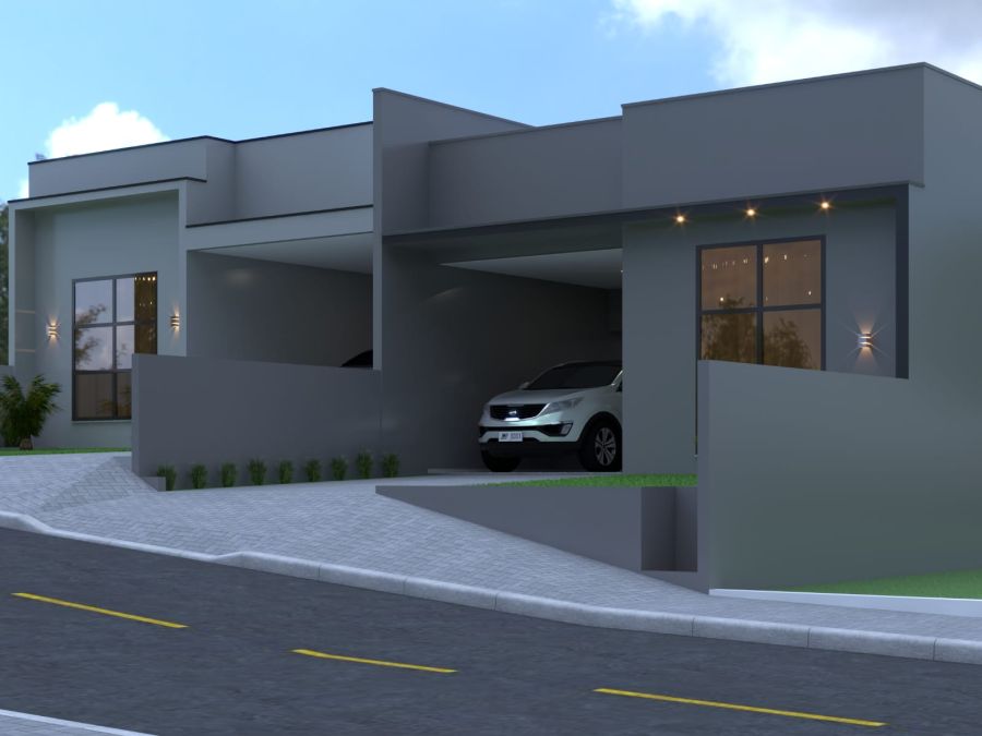 76m² de Área Construída, 2 Quartos, Cozinha/Sala, WC Social, Área de Serviços, Garagem Coberta